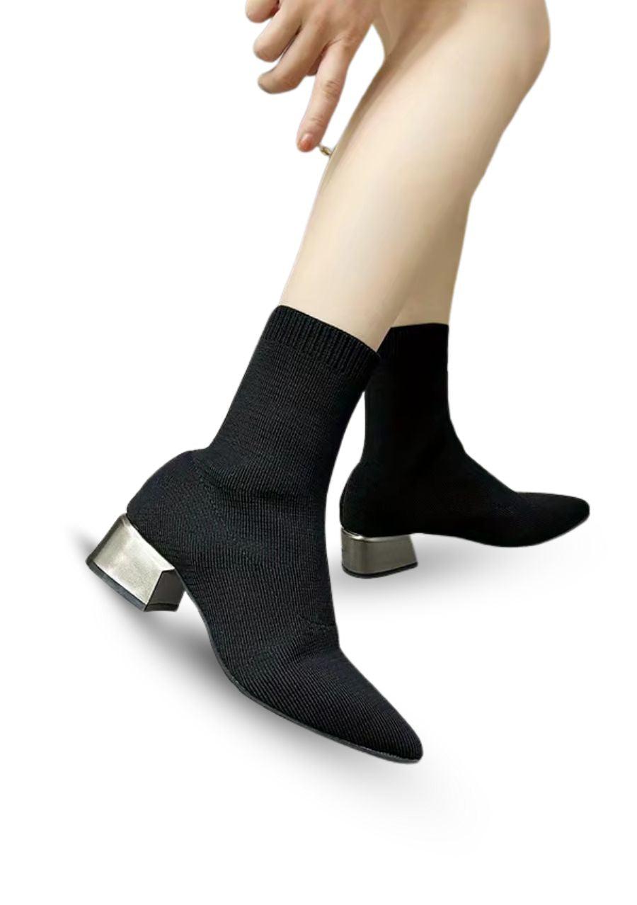 Albi Boot – Pointed Toe & Stretchy Chunky Mid Heel