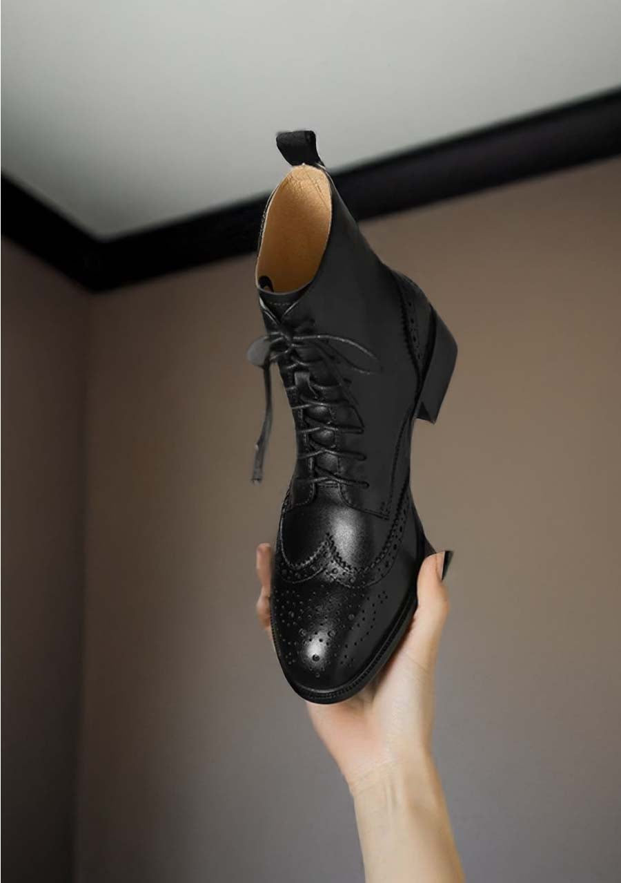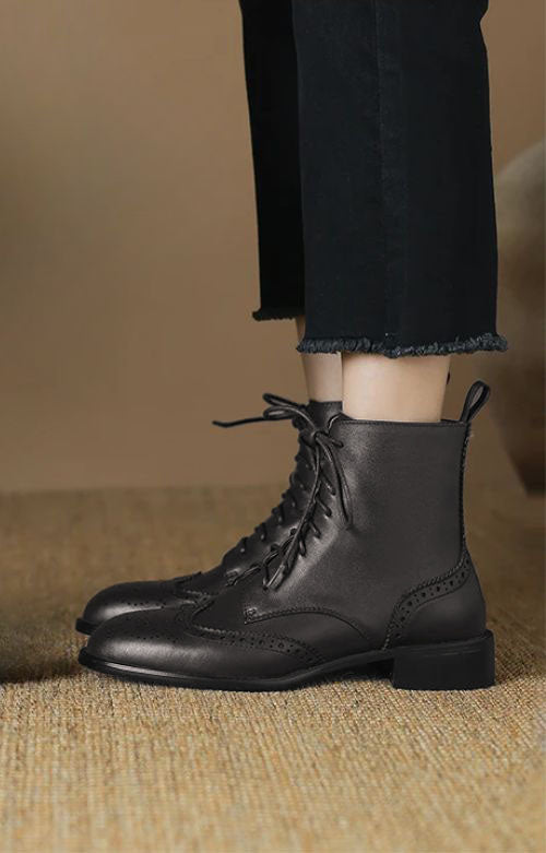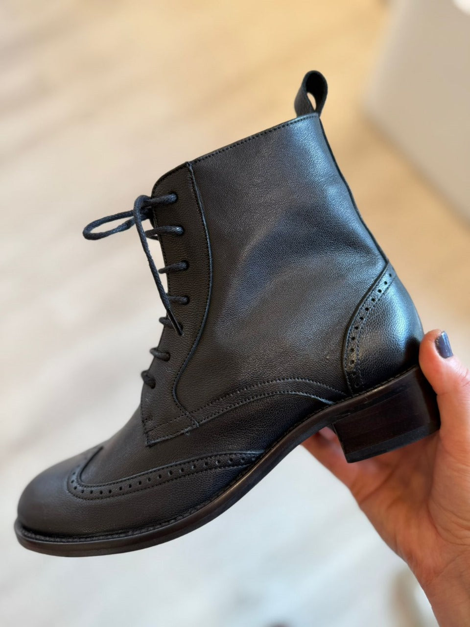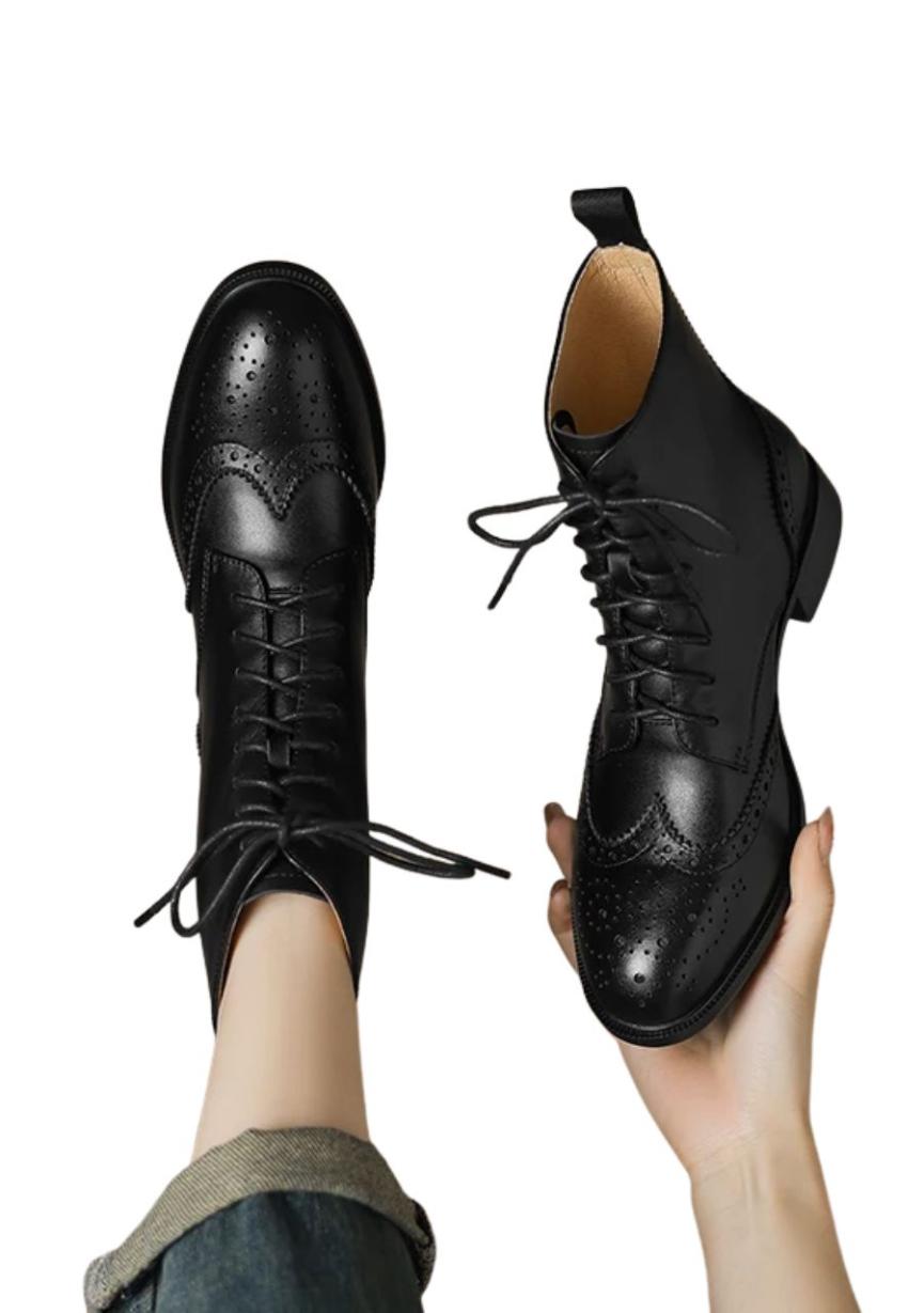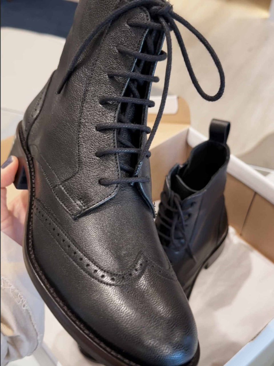 I fell in love with this boot! The leather finish is impeccable, very soft, and the brogue detail adds even more charm. It arrived well packaged and the smell of real leather is wonderful!